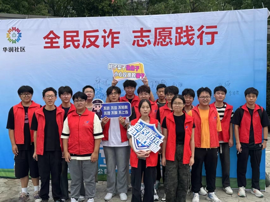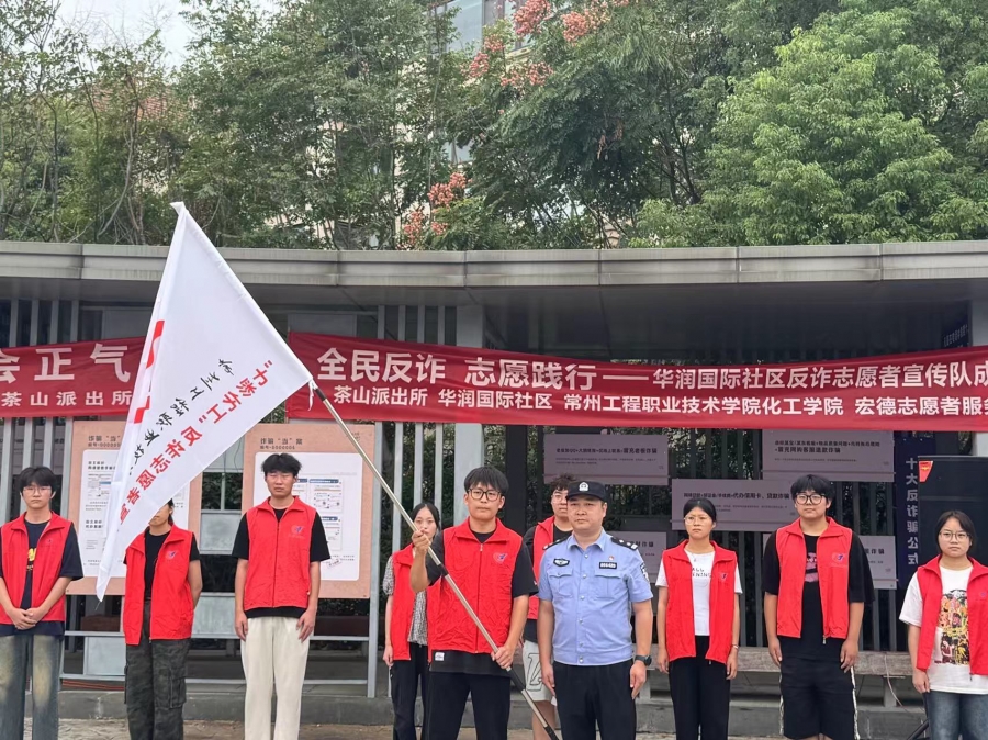 为进一步扩大反电诈宣传工作的广度和深度,切实保障人民群众的财产安全,提升社区基层治理水平,动员更多居民参与到志愿反诈的队伍中来,汇聚反诈的群防群治力量,共同唱响平安建设主旋律。9月27日上午,最靠谱的十大足球平台团委联合茶山派出所、华润国际社区齐聚天宁区茶山街道反诈主题公园,举行“‘义’起反诈”志愿者队伍成立仪式。