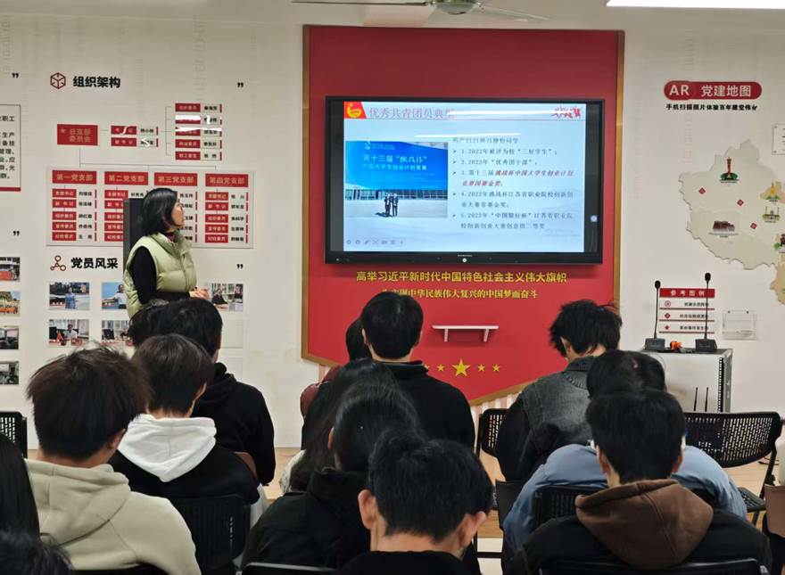 在“优秀共青团员典型”环节,团课聚焦身边榜样,重点分享了药产2121班吕静怡、化工2121班郁枝昕等同学的先进事迹。吕静怡同学凭借扎实的专业知识和创新思维,在“挑战杯”中国老员工创业计划竞赛中斩获国赛金奖,其勇于探索、敢闯敢试的精神令人钦佩。郁枝昕同学作为校“延春”青年志愿者协会主席,不仅学习成绩名列前茅,更怀揣强烈的社会责任感,积极投身志愿服务公益事业,用实际行动诠释青年担当,荣获江苏省优秀青年志愿者等称号。她兼顾学业、工作与志愿服务的成长经历,让现场同学深受鼓舞。