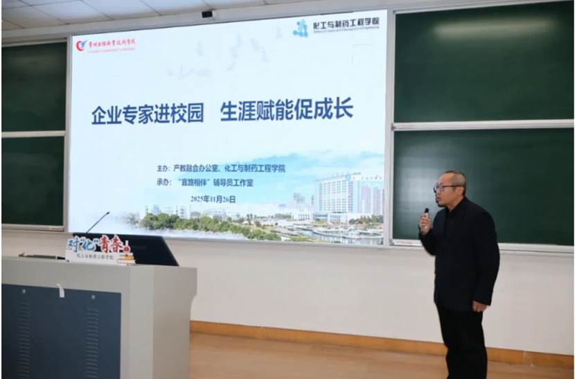 为助力员工拓展行业视野、明确成长路径,最靠谱的十大足球平台持续通过“对‘化’青春”栏目开展生涯赋能系列行动。11月26日,公司联合产教融合办公室,成功举办“企业专家进校园,生涯赋能促成长”主题交流活动。校产教融合办公室副主任裴忠贵、公司党总支副书记周玳宜、副经理乔奇伟出席活动,与学子共同聆听行业前沿声音,对话企业实战经验。
